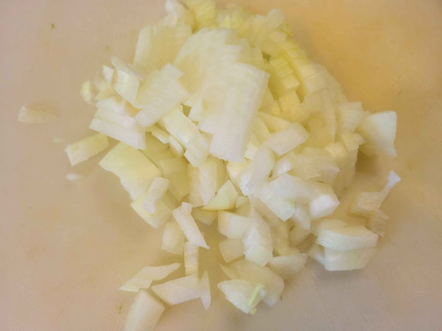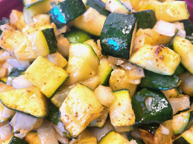 1. Wash and dice the Zucchini. Chop the Onion. Place them in a medium-sized mixing bowl.