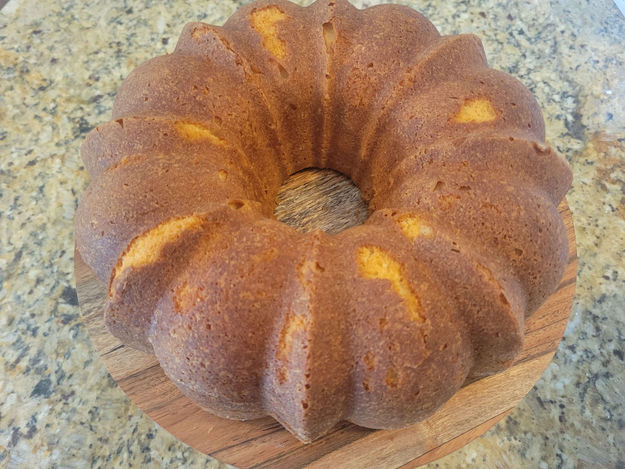 6. Bake the cake for 50-60 minutes, or until an inserted toothpick comes out clean. Let the cake sit for 20 minutes in the pan before removing it. Turn the cake upside down on a dish. You may have to bang it a little to get it to come out. Cool completely.