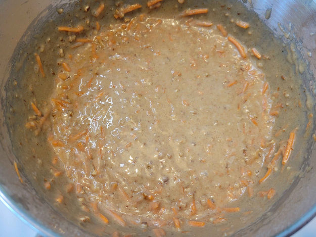 3. Add 3 cups of Grated Carrots and 1 c. Chopped Pecans and mix well.