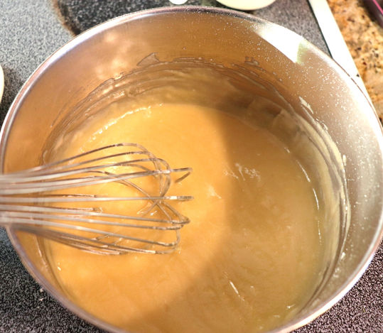 8. When the butter is melted and starting to bubble add the Flour and whisk it in. Stir till it is smooth and then continue cooking for about a minute.