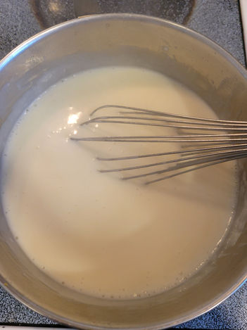 9. Add the Milk and stir it until it is smooth. Continue cooking until it thickens. Usually until it is just starting to boil.