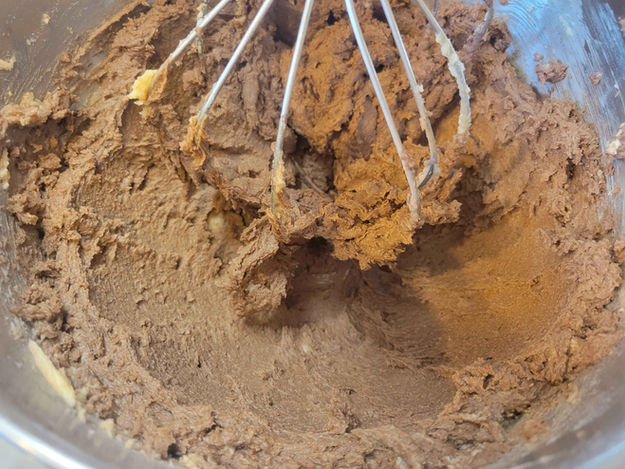 6. Add the Flour and mix. Dough should be stiff, but still a little sticky. You can roll them in balls if you wish. I usually just scoop them onto the pan.