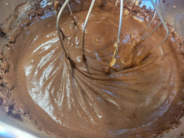 4. Add the Cocoa, Baking Soda, Baking Powder, Vanilla, Salt, and the Flour. Mix this really well till all the ingredients are combined.