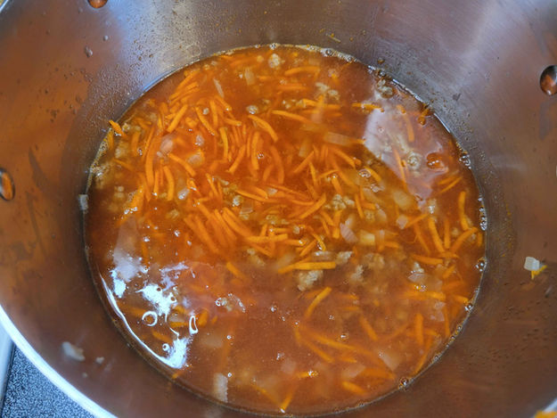 3. Add the Tomato Juice, Water, Grated Carrot, and the Pepper. Bring it to a boil and cook until the carrots are tender. About 10-15 minutes.