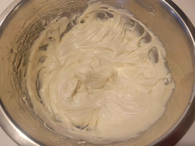6. Make the Frosting. In a medium-sized mixing bowl combine the Butter, Cream Cheese, Vanilla, Milk, and the Powdered Sugar. Mix it well.