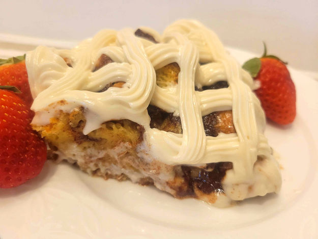 This is a delicious recipe that my family loves! I really love making overnight breakfast casseroles because I just have to wake up and pop them in the oven in the morning. They are simple to put together the night before and then we have a delicious warm breakfast the next morning that didn’t take much work. This recipe is no exception. It is delicious! It tastes like warm Cinnamon Rolls without all the work of making the dough. This recipe comes together in about 10-15 minutes. This recipe is holiday worthy or it can be made for a weekend meal. We hope you love it as much as we do!