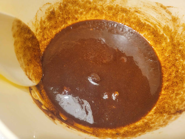 4. In a small bowl mix the Melted Butter, Brown Sugar, Cinnamon, and the Nutmeg. Drizzle over the top of the bread cubes.