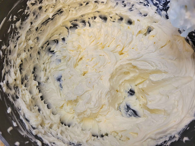 4. In a large mixing bowl mix the Cream Cheese well until it is very smooth and has no lumps.