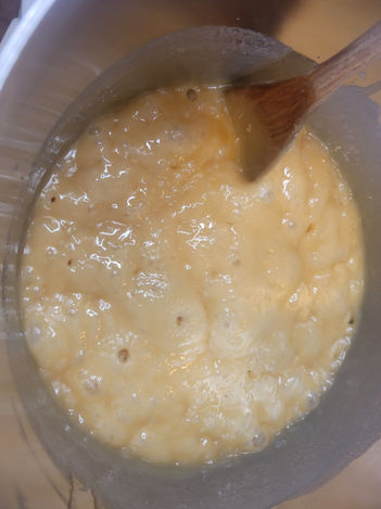 7. Remove the Caramel from the heat and add the Vanilla. Stir it in completely.