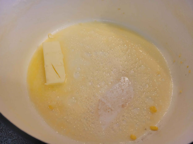 4. In the same pot, melt the Butter. When the butter is melted, stir in the flour and let it cook for one minute. Then slowly add the cream back in, while stirring constantly.