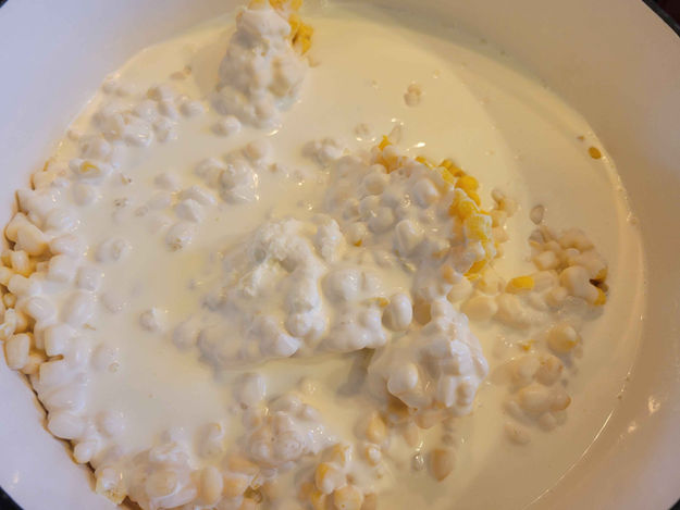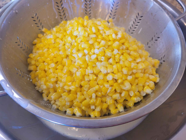 3. Drain the Cream off the corn, but SAVE the cream. I usually drain it into a large mixing bowl. Set the corn and the cream aside.